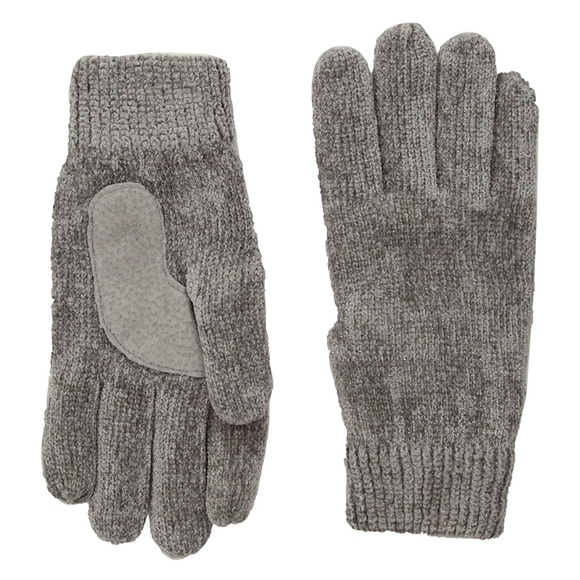 Chrome gray rayon chenille knit gloves. Have a super soft and warm fleece lining. Never worn.