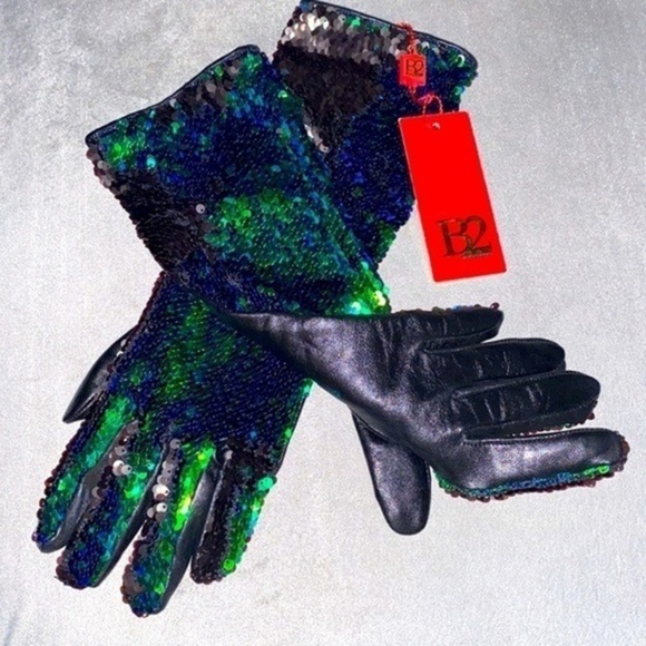 Gloves NWT B2 BALIZZA Fancy Mermaid Sequin Leather Gloves