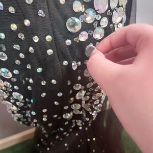 •Glow Dress Gown Backless With Tie Back With Zipper On The Side. The beads are falling off.