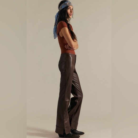 So sleek in a vegan leather, these bold pants from our We The Free collection feature a classic bootcut fit with flattering seamed paneling and curve-hugging design.