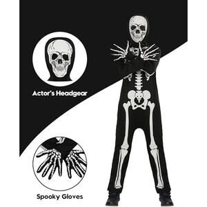 Glow in The Dark Skeleton Costume 2 Piece Set includes Jumpsuit Treat Bag size M
