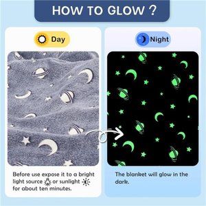 🧿Material and Design: The glowing blanket is made of 100% high-quality polyester fiber. It's soft and durable with exquisite packaging. What's unique about the blanket is that it can glow in the dark, which is mysterious and interesting. Just expose the blanket to a bright light source or sunlight for about ten minutes before use, and it will glow in the dark. The stronger the light is, the brighter it will glow.