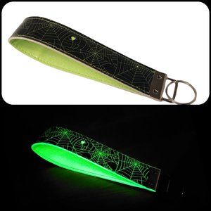 Glow in the Dark Key Lanyard Wristlet Strap Made in USA Rainbow Spiderweb Goth