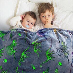 GlowinThe Dark Blanket Dinosaur Blanket for Boys Girls Kids Dino Throw Blankets