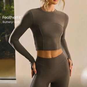 GLOWMODE Stylish gray-green activewear SET with ribbed panels and sleek seams. Perfect for workouts. weared just 2 times.