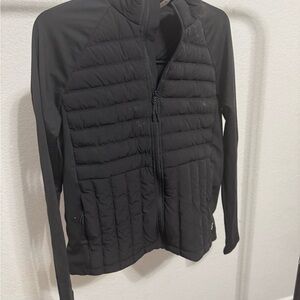 Stylish black quilted jacket. Full zip front. Long sleeves. Perfect for layering.