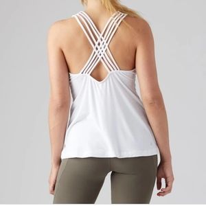 Gently used, worn less than 5 times. Breathable and bold, this open back tank features a strappy, cross back and slight high-low hem. Made of our super soft fabric, this tank is comfy and versatile, making it perfect for any workout. This fabric not only feels super buttery soft against your skin, it has all the technical features to keep up with you in the gym. With superior stretch and moisture wicking properties, this lightweight tri-blend is ideal for any fitness activity.