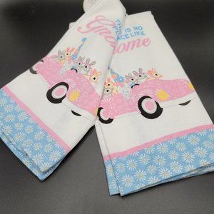 Gnome Easter Towels 2 Pc Bunny Rabbit Daisy Spring Holiday Kitchen Linens