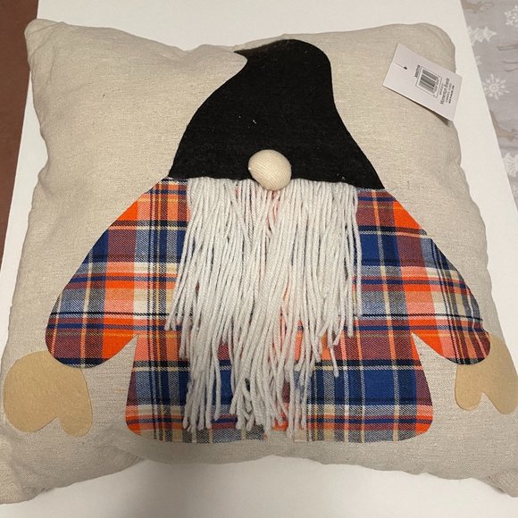 Gnome Hello Fall Filled Stuffed Accent Pillow 18in x 18in NEW