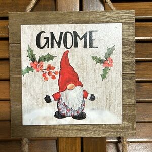 Gnome Sweet Gnome Wooden Triple Wall Hanging Holiday Christmas Decor, Approx. Length 22.5” when hanging, each square is 6" x 6", Good Condition