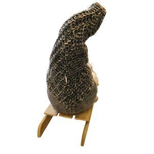 Detailed craftsmanship brings this charming gnome to life, featuring a knitted hat and a wooden sled. Ideal for seasonal decor.
