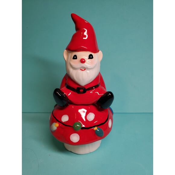 Gnome on Mushroom Ceramic Salt and Pepper Shakers