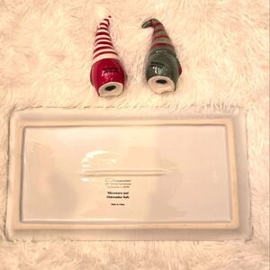 Gnomes Ceramic Serving Tray with Salt and Pepper Shakers NWT