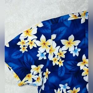 Go Barefoot Made in USA Size Medium Blue Hawaiian Fooral Print Men's Shirt