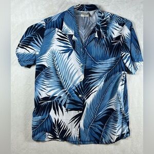 Go Barefoot Made in USA Size Medium Blue Hawaiian Print Men's Shirt