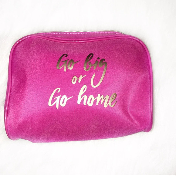 Go Big or Go home pink & gold nwot cosmetic bag