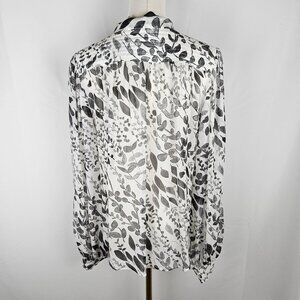 This long-sleeve washable silk blouse offers a sophisticated floral leaf design in monochromatic tones, featuring a tie front neckline and elasticized cuffs for refined elegance. The Original Washable Silk, Since 1984 in NY. Go> by GoSilk is a contemporary collection of modern, sophisticated sportswear separates designed in luxurious washable silk.