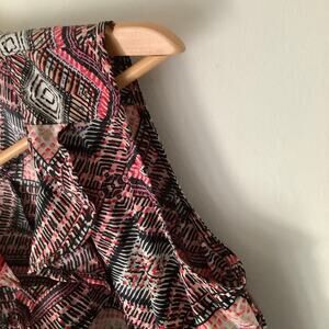 Go CoCo Juniors Multicolor V Neck Boho Geo Abstract Print Pocketed Romper Large