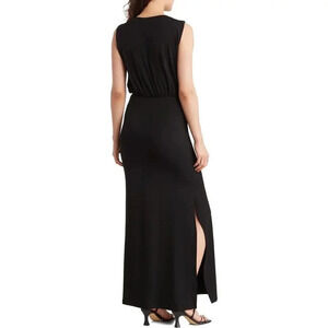 Go Couture Blouson Jersey Knit Navy Blue Maxi Dress Women's L NWOT