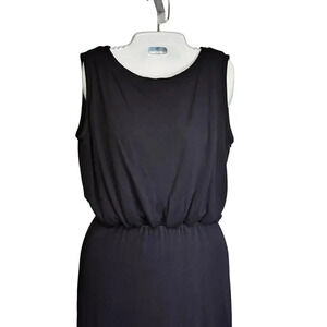 Brand New without Tags Go Couture Blouson Jersey Knit Navy Blue Crew Neck Sleeveless Dress. Elastic Waist, Side Slits. Comfy, Stretchy, Flattering and Elegant
