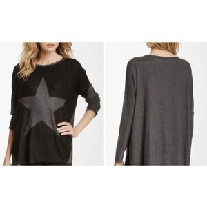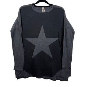 Go Couture Colorblock Star Top Charcoal Gray Oversized Side Slits Size Small. Excellent condition. Some very slight pilling. See photos for details and unstretched measurements. Shop my closet and bundle multiple items for discounts and one shipping fee!