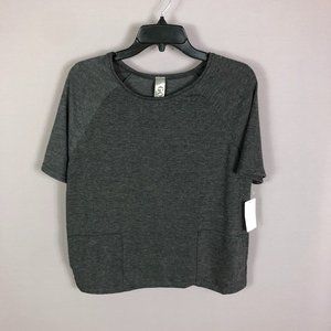 Go Couture Gray Short Sleeve Round Neck Casual Solid Pocket Shirt Sz Med…