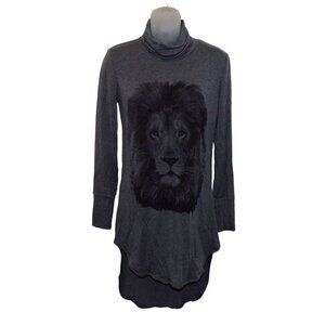 Go Couture LION Turtleneck High Low Hem Tunic Sweater S Long Sleeve Dark Grey