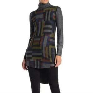 Go Couture Women's Size Small Gray Colorblock Long Sleeve Pullover Turtleneck Tunic Top Blouse.