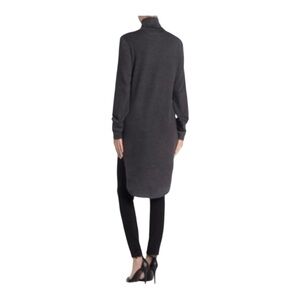 A classic turtleneck offers a refined, elegant style into a tunic sweater with a dramatic high/low hemline.