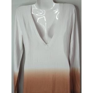 Go Couture White Rust & Gray Dip Dye Ombre V-Back Mini Shift Dress Size M