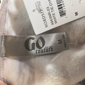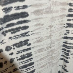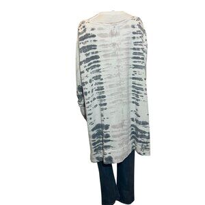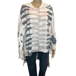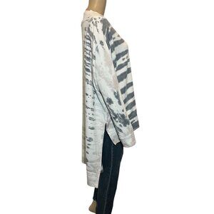 Go Couture Women’s Top Tunic Hi Low Sweatshirt Gray white beige Tie Dye Size Medium Stretch long sleeves NWT