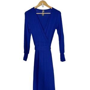 Go Couture Wrap Dress Long Sleeve Surplice Maxi Royal Blue NWT Small