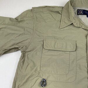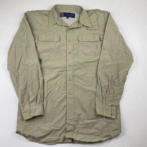 Go Fish Adventure Apparel Button Up Fishing Shirt Men’s M Roll Tab Sleeve