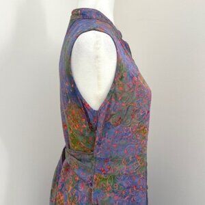 Go Fish Batik Style Sleeveless Button Front Dress Tie Back Multicolor Boho Small