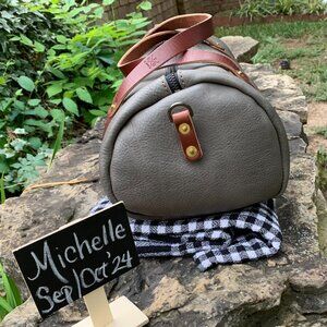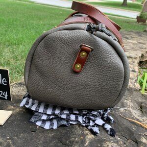 This is a beautiful Large Jane Lead Gray/Saddle handles & strap. If you have not tried a GFG Jane - why not?! These are such a great style and they have been a wonderful transition from totes.