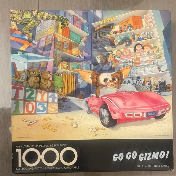 An authentic Springbok Jigsaw Puzzle. Based on the classic film The Gremlins. Build once 1000 interlocking pieces all INCLUDED. Box has normal wear and tear please reference picture. Vintage puzzle 1984.