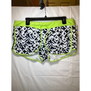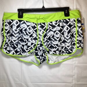 Go Gossip Women's Black White Contrast-Trim Swim Shorts w Drawstring, XL
