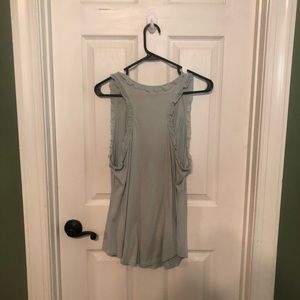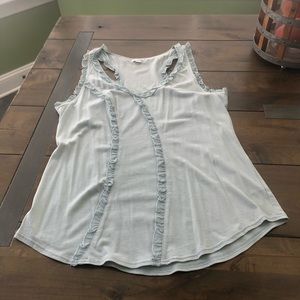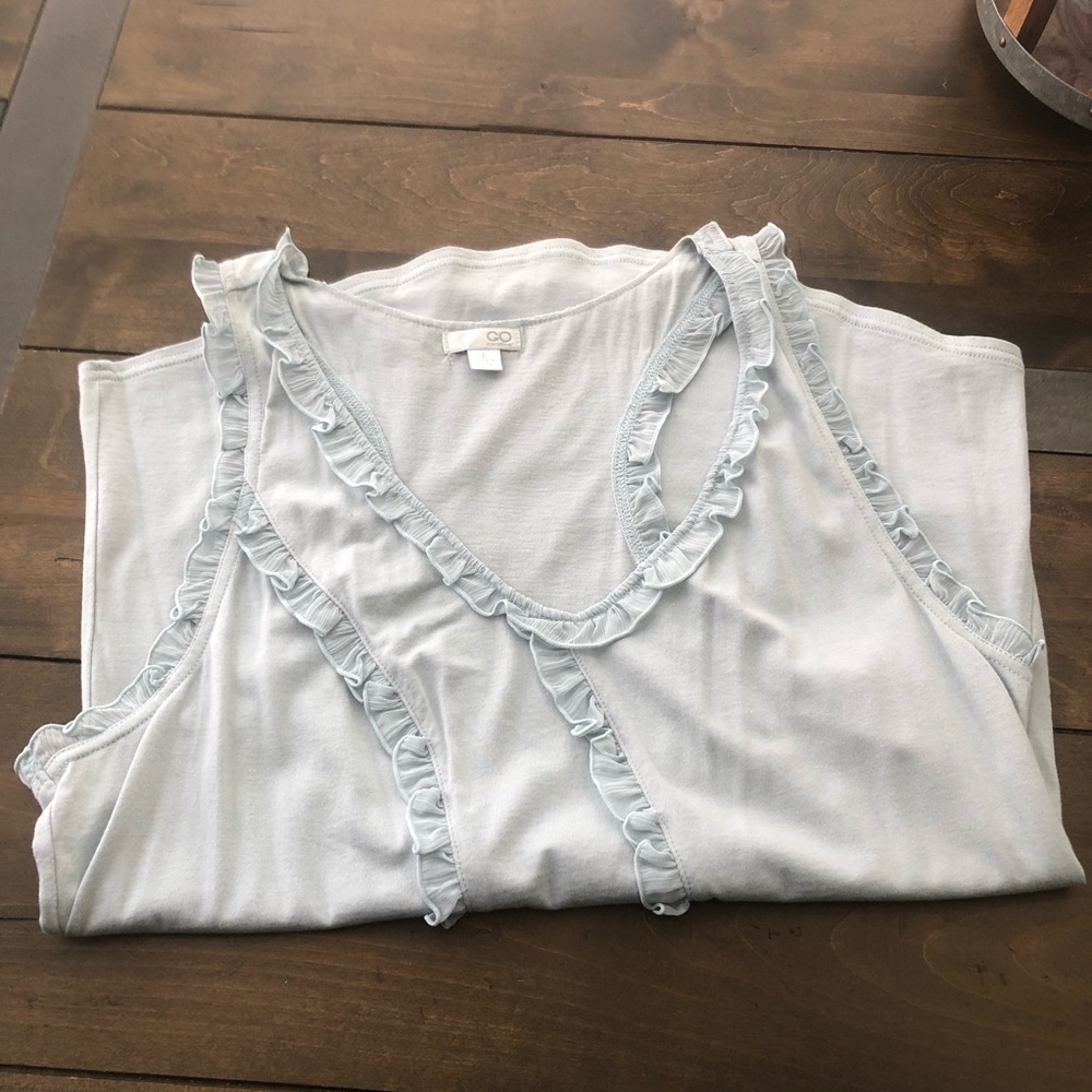 Super cute Go International sleeveless top, with ruffle details, powder blue, racer back style, size L, worn a couple of times.