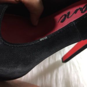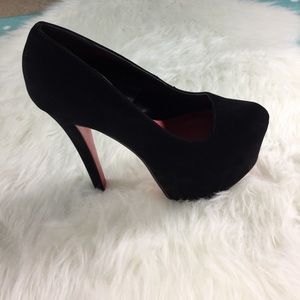 Go Jane 6.5"heel, size 8.5 shoe. NWT NEVER BEEN WORN SEE PICS FOR BOTTOMS. 1 imperfect from storage see frame 7. 1 white dot on bottom, came like that when I purchased. Suede like material, platform in front for balance. Accessories sold separately. These are sexy and waiting for a even sexier mama to show them off