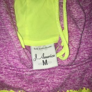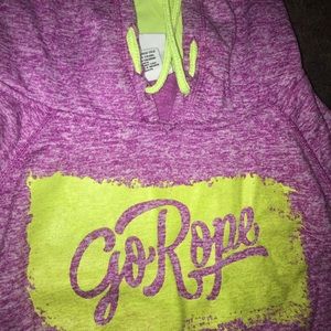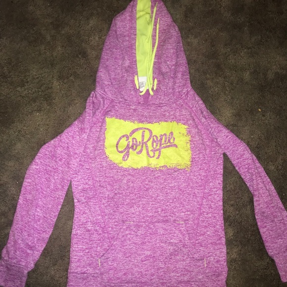Go Rope hoodie. Worn once. Small tear at the neck, i did it when i bought it for a more roomy feel. Medium. True to size. Soft fuzzy fabric inside. Heather pink/purple color.