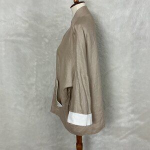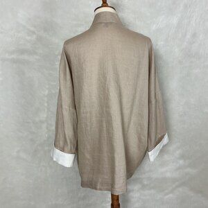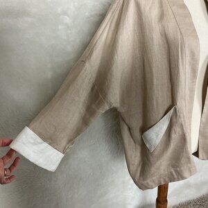 Go Silk Beige Linen White Contrast Open Front Lagenlook Jacket PM