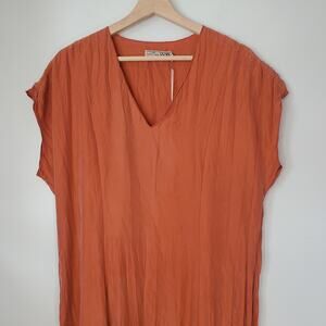 Go Silk Crinkle Cut Midi Dress Washable Silk Cayenne V-Neck Orange Size S NEW