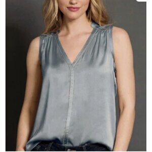 Go Silk Washable Silk Sleeveless V-Neck Blouse XS Slate Gray