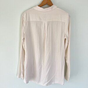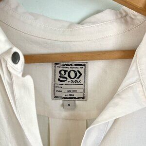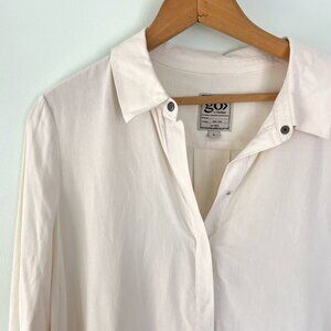 VGUC off white 100% silk tunic top from Go by Go Silk! No flaws. Features hand pockets and snap neck. Timeless and super high quality, this is effortlessly elevated! Great drape and very luxurious hand feel! Generous sizing for a small. Perfect layer for work, travel or everyday!