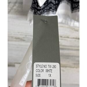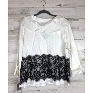 Go Silk Women’s Plus 1X White Blouse Black Lace Overlay Long Sleeve NEW Designer