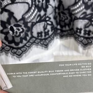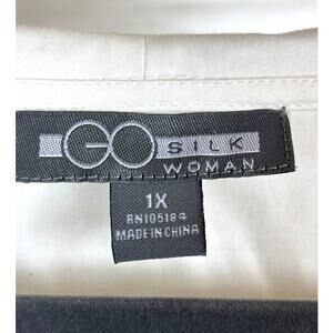 Go Silk women’s plus size 1X blouse in white with an elegant black lace overlay. This couture-inspired long sleeve top is brand new and crafted from luxurious silk blend fabric for a sophisticated, timeless look. Perfect for pairing with tailored trousers, skirts, or denim, it works beautifully for work, evenings, or special occasions. A chic statement piece that combines modern contrast with classic luxury.