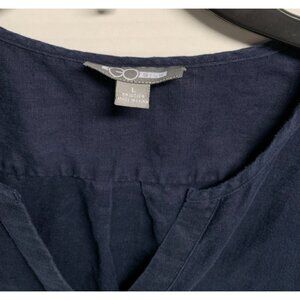 Go Silk Womens Size Large Navy Blue 3/4 Sleeve Button Up Shirt Top Roll Tab Sleeve Linen Blouse Epaulettes