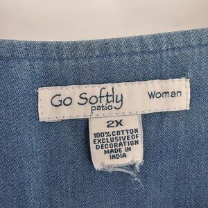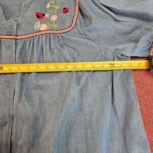Go Softly Chambray Ladybug Embroidered Patio Dress 2X Snap Front Boho Relaxed