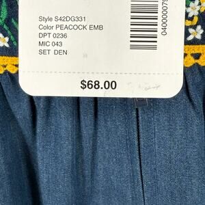 Go Softly Denim Embroidered Floral Peacock Patio Dress Plus Size 1X Full Zip