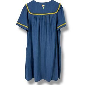 Go Softly Denim Embroidered Floral Peacock Patio Dress Sz Small Full Zip